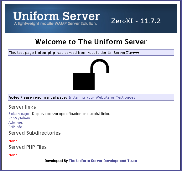 This tutorial uses Version 11-7-2 (ZeroXI) that is downloadable from (http://jaist.dl.sourceforge.net/project/miniserver/Uniform%20Server%20ZeroXI/11_7_2_ZeroXI/11_7_2_ZeroXI.exe ) or (https://drive.google.com/file/d/0BwDdZQLQH_ALYjJ4RmVBd0tjZ3M/view?usp=sharing ).